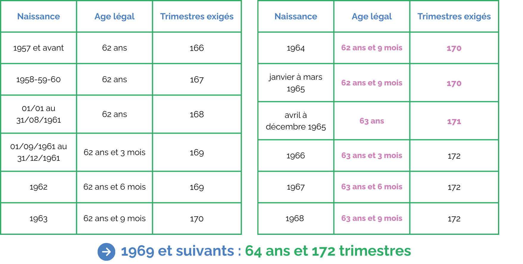 L’âge légal est décalé d’un trimestre pour les générations de 1964 à 1968.